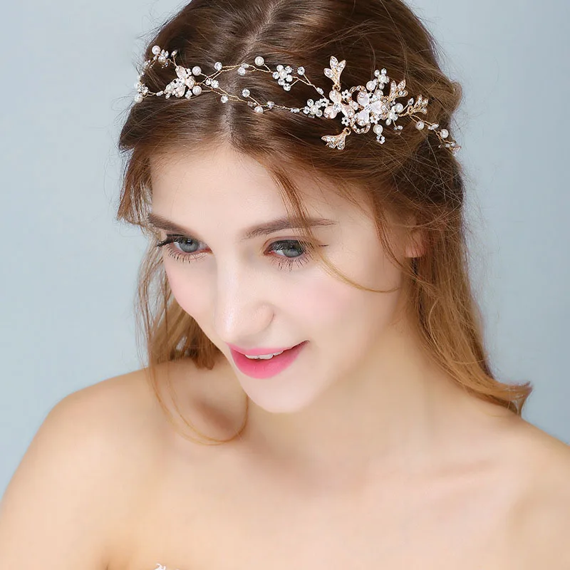ORIGINAL SLBRIDAL Rose Gold Crystal Rhinestone Pearls Wedding Hair accessories Hair Vine Hairband Bridal Hea