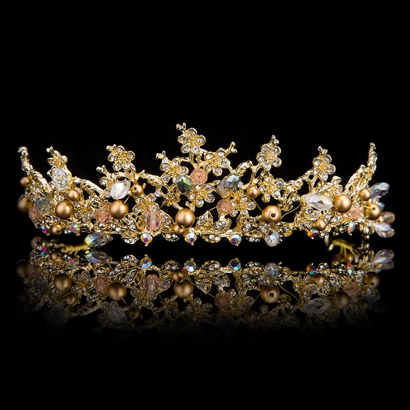 REVIEW TOP SELLER TREAZY Handmade Gold Color Crystal Floral Bridal Tiara with Earrings Wedding Crown for Bride Weddin