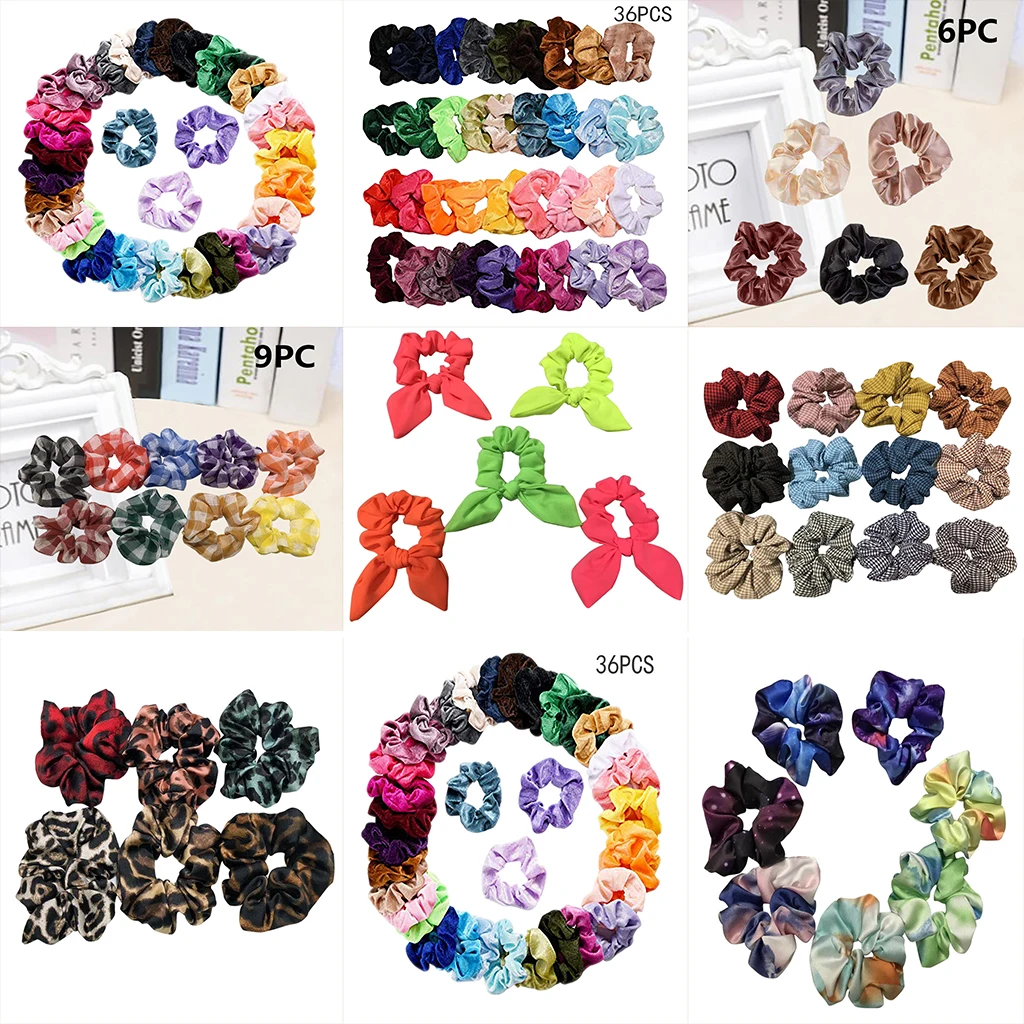 Soft chiffon Velvet satin Hair Scrunchie floral Grip Loop Holder Stretchy Hair band hair ties acces
