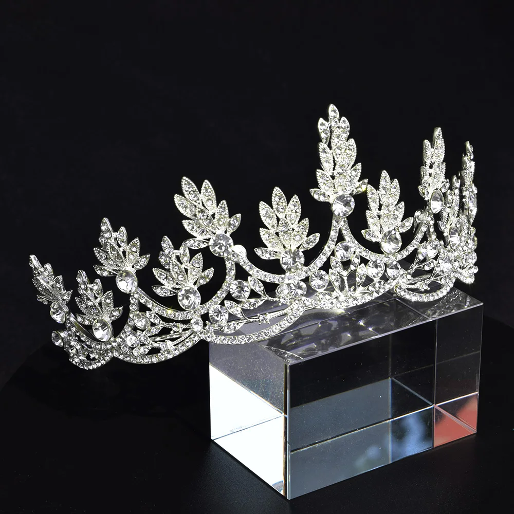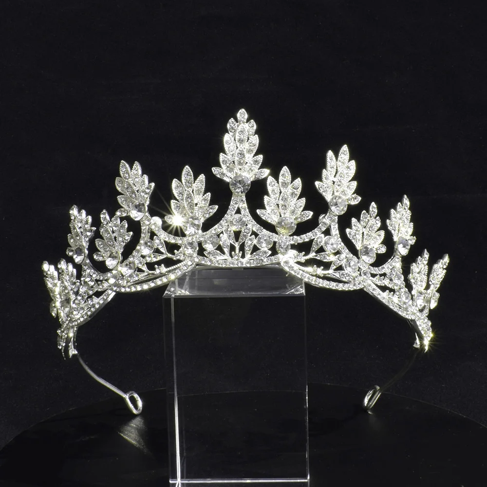 Wedding Hair Tiara and Crowns with Bobby Hair Pins Rhinestone Leaf Shape Crystal Baroque Headband G